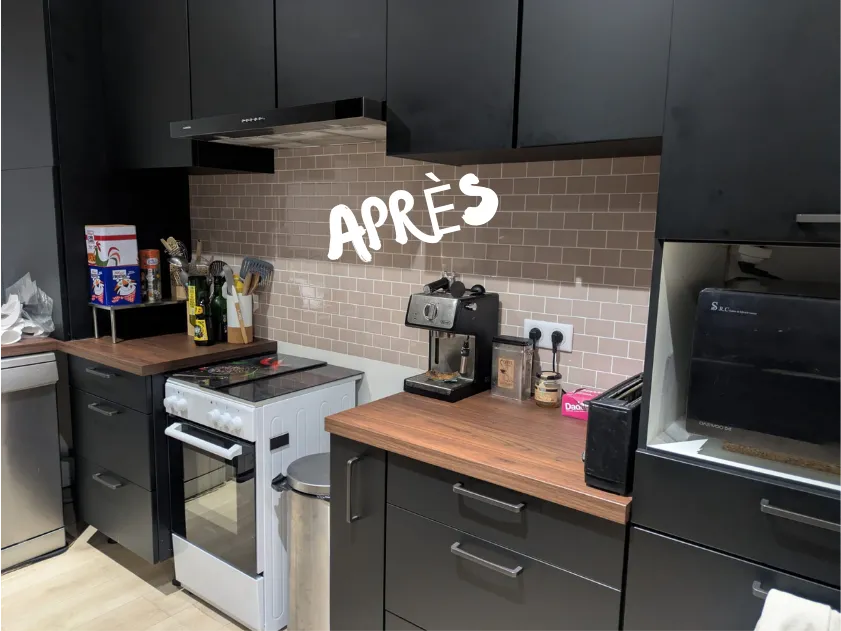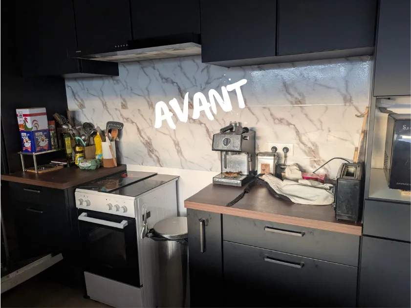 - Et même un covering mural intégral sur crédence de cuisine, transformant une surface ordinaire en élément décoratif unique et moderne, parfaitement adapté à l’identité du lieu.