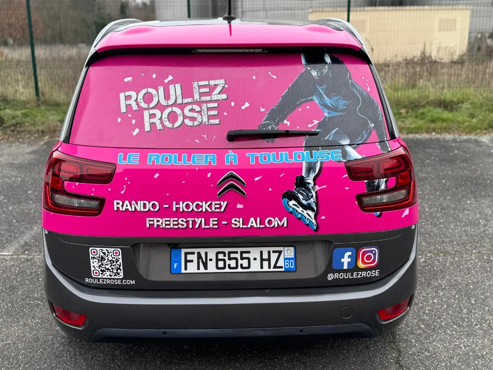 Le véhicule floqué pour ROULEZ ROSE ne se contente pas de rouler : il incarne l’énergie et les valeurs de l’association. Grâce à un design dynamique, original et parfaitement intégré aux lignes du véhicule, ce semi-covering attire l’œil, suscite l’émotion et renforce la visibilité de l’association à chaque kilomètre parcouru. Pour nous, il ne s’agit pas seulement d’appliquer un adhésif : c’est un véritable travail créatif et technique, pensé pour magnifier la communication mobile de ROULEZ ROSE.